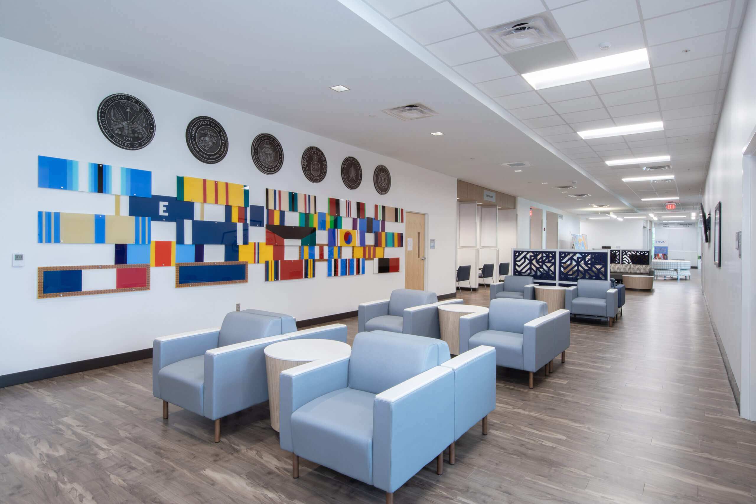 GMC provided architecture, interior design and landscape architecture for both the outpatient clinic and the mental health facility. Services offered at the clinic include primary care, telehealth, prosthetics, radiology, women’s health, CT scans and MRI. At the facility veterans have access to a wide array of services like primary care, women’s health, whole health, physical medicine and rehabilitation, diagnostic imaging and several specialty services.
