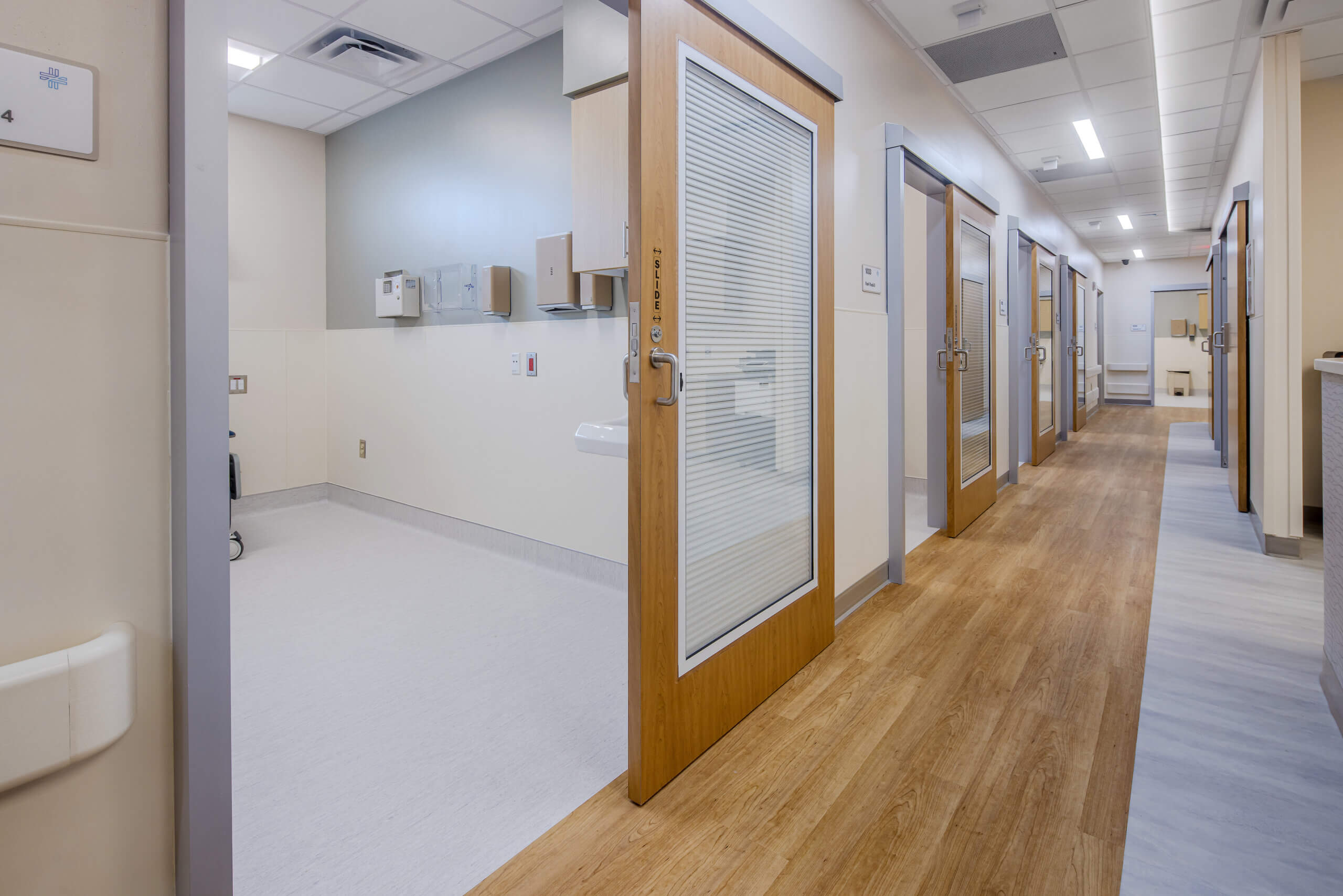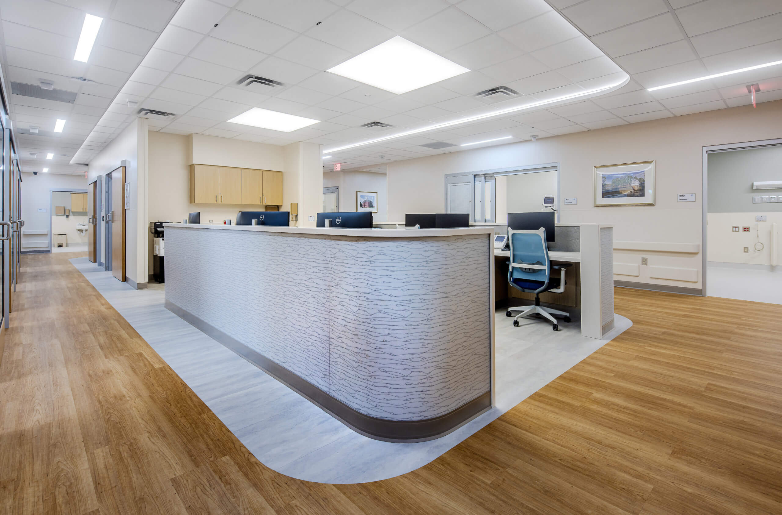 Designed to meet and exceed current FGI guidelines and building codes, the new Emergency Department emphasizes efficiency, safety and performance. A centralized core – housing triage, the nurses’ station, and key support spaces – provides clear visibility and quick access to clinical areas, improving communication and response times. Additional features, including a decontamination room and anti-ligature secure holding areas, support a wide spectrum of patient needs.